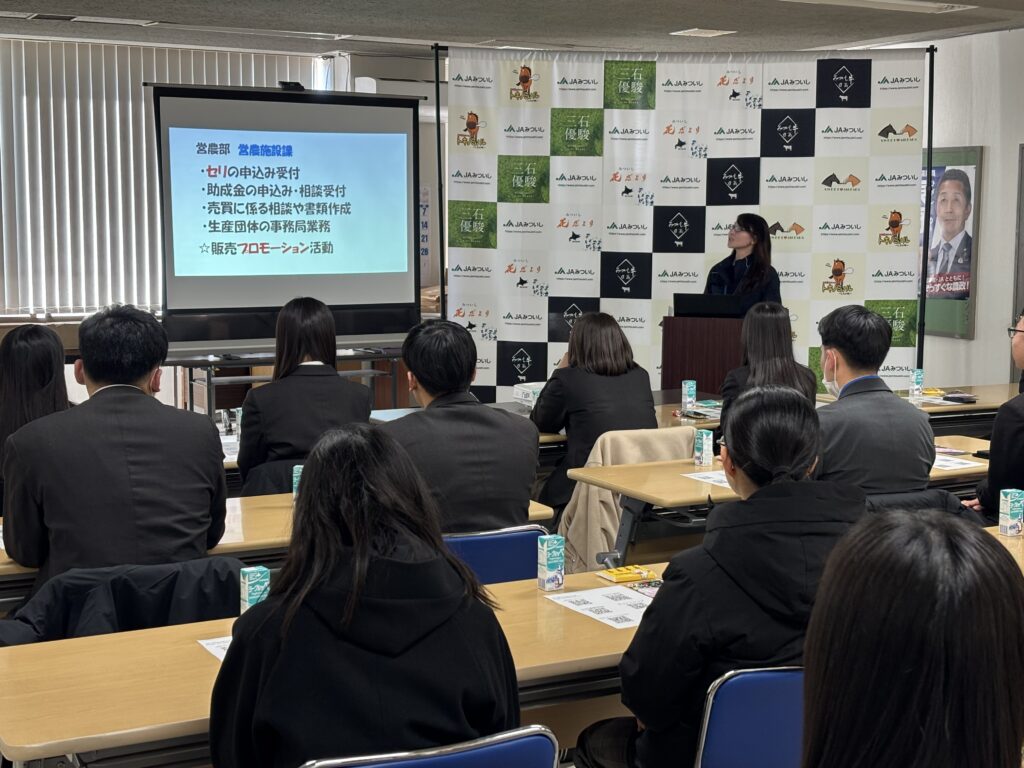 みなさんこんにちは。広報委員長の沢口です! 本日は、JAみついしにインターンシップツアーとして静内高校・静内農業高校から計20名の生徒たちが来て……
