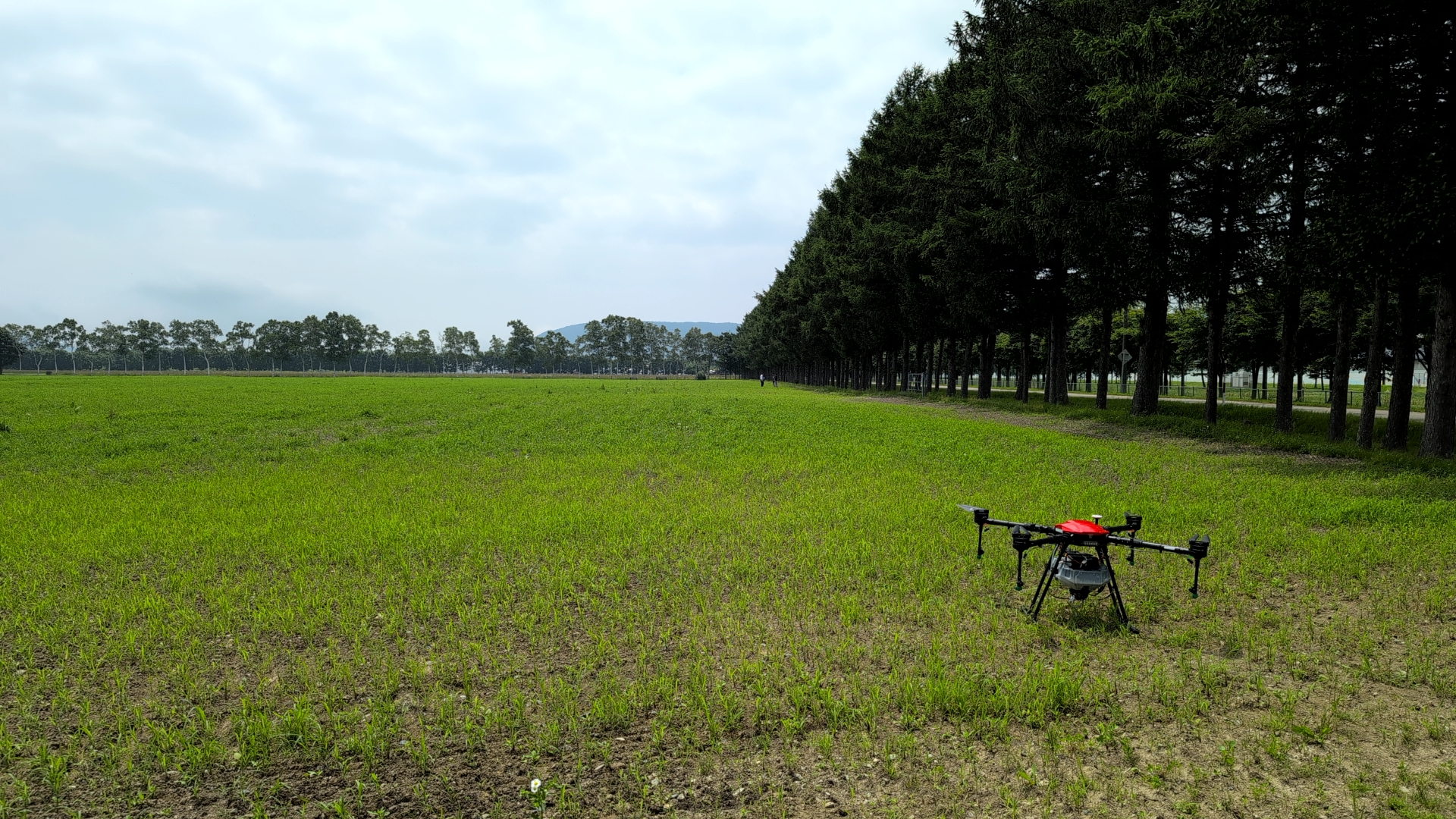 そこで、最新のICT技術を用いて圃場状態が悪くても適期に除草剤を散布すべく、農業用ドローンを用いて除草剤を散布する試験を実施しました。
