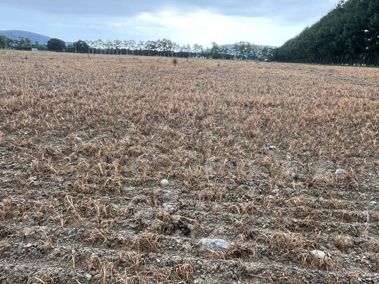 試験散布10日後に畑を確認すると、しっかり枯れていました。新しい事を導入することで多大な心配や不安もあり苦慮しますが、年々悪化していると思われる異常気象に対して、今後も試行錯誤を続けて、牧草(採草地)更新の更なる成功率飛躍に向けて努力を続けていきたいと思います。