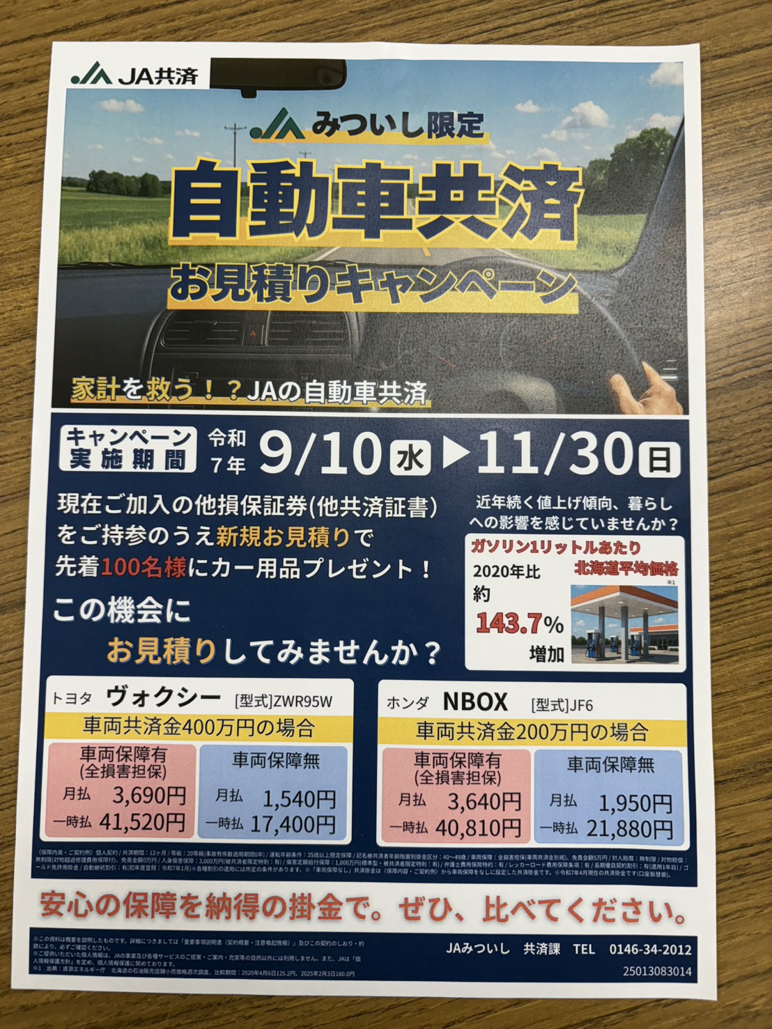 あと1週間となりますが、お見積りされていない方がいらっしゃいましたら是非 共済課までご連絡ください!