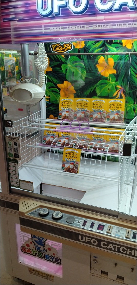 キャッツアイ全店舗に、みついし牛キーマカレーのクレーンゲームが導入されました~☆