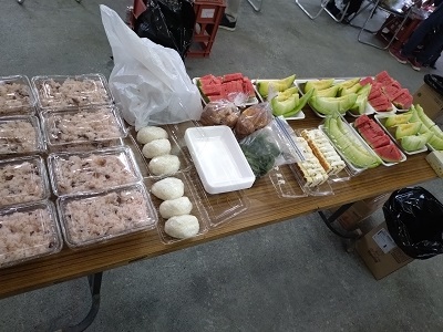 各々持ち込みで食べ物を出し合った結果、もの凄い豪勢に!