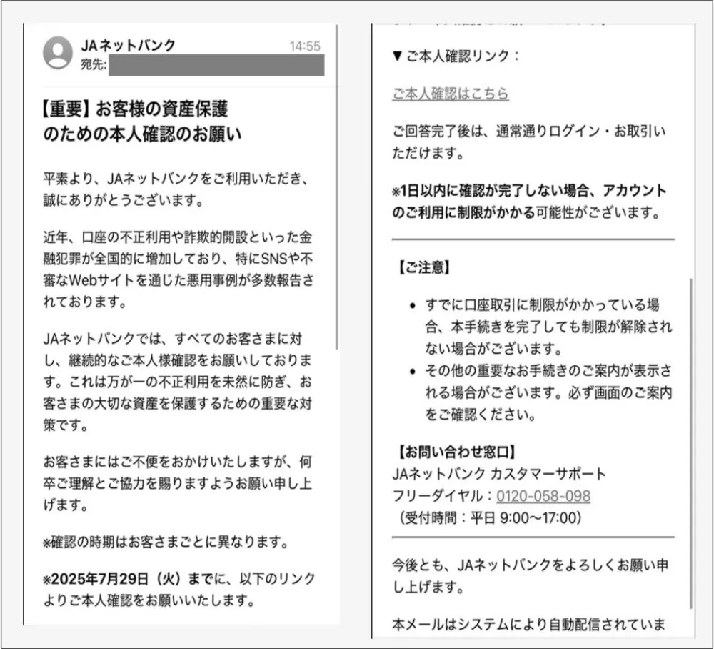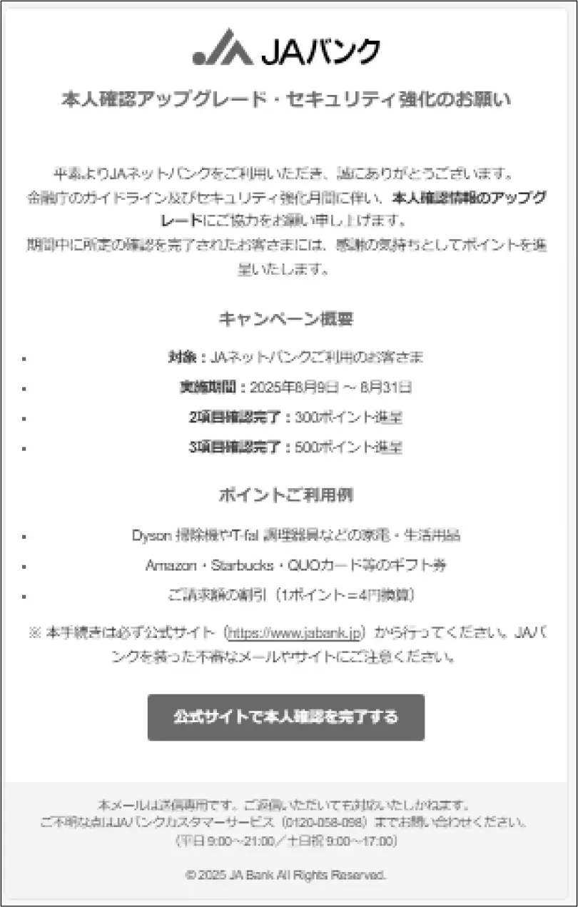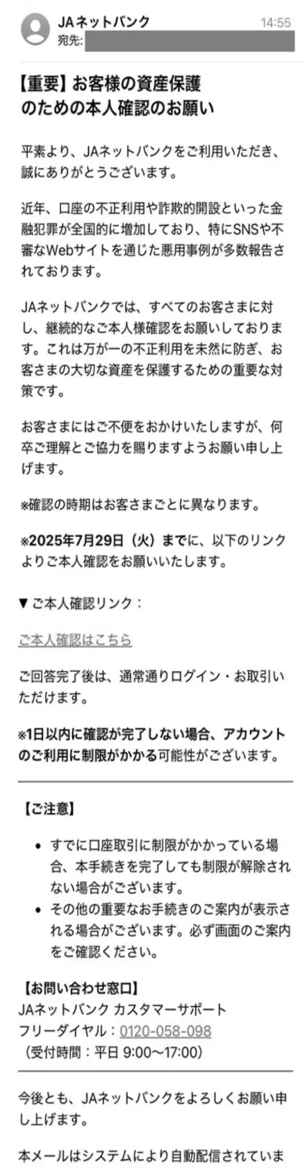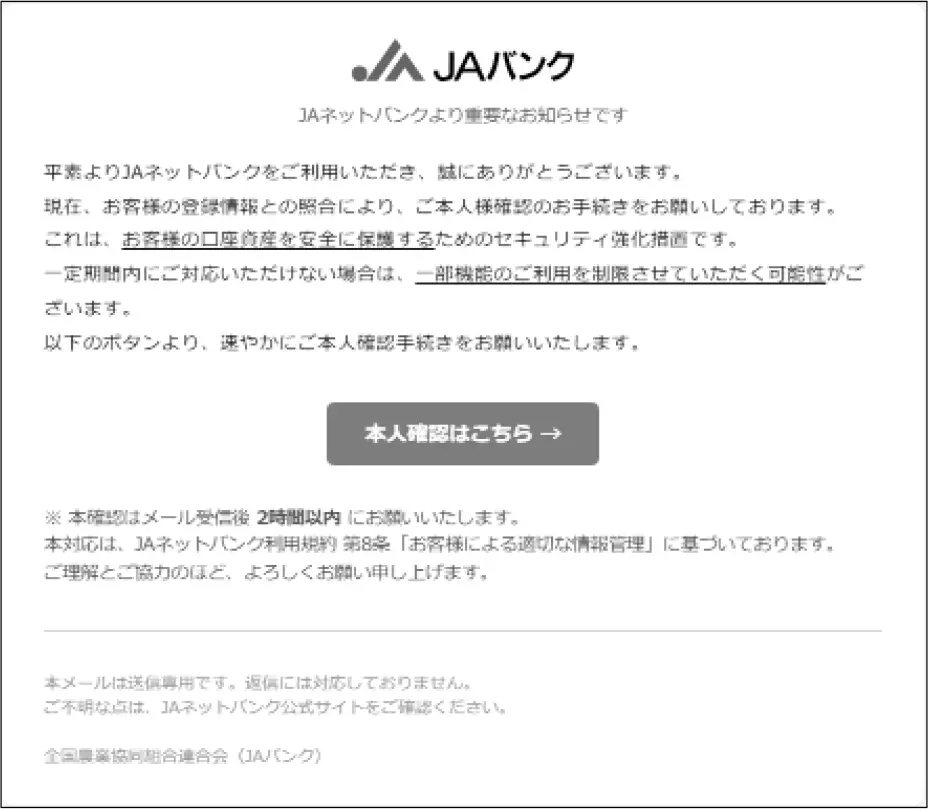 件名:【重要なお知らせ】JAバンク:本人確認のご対応について