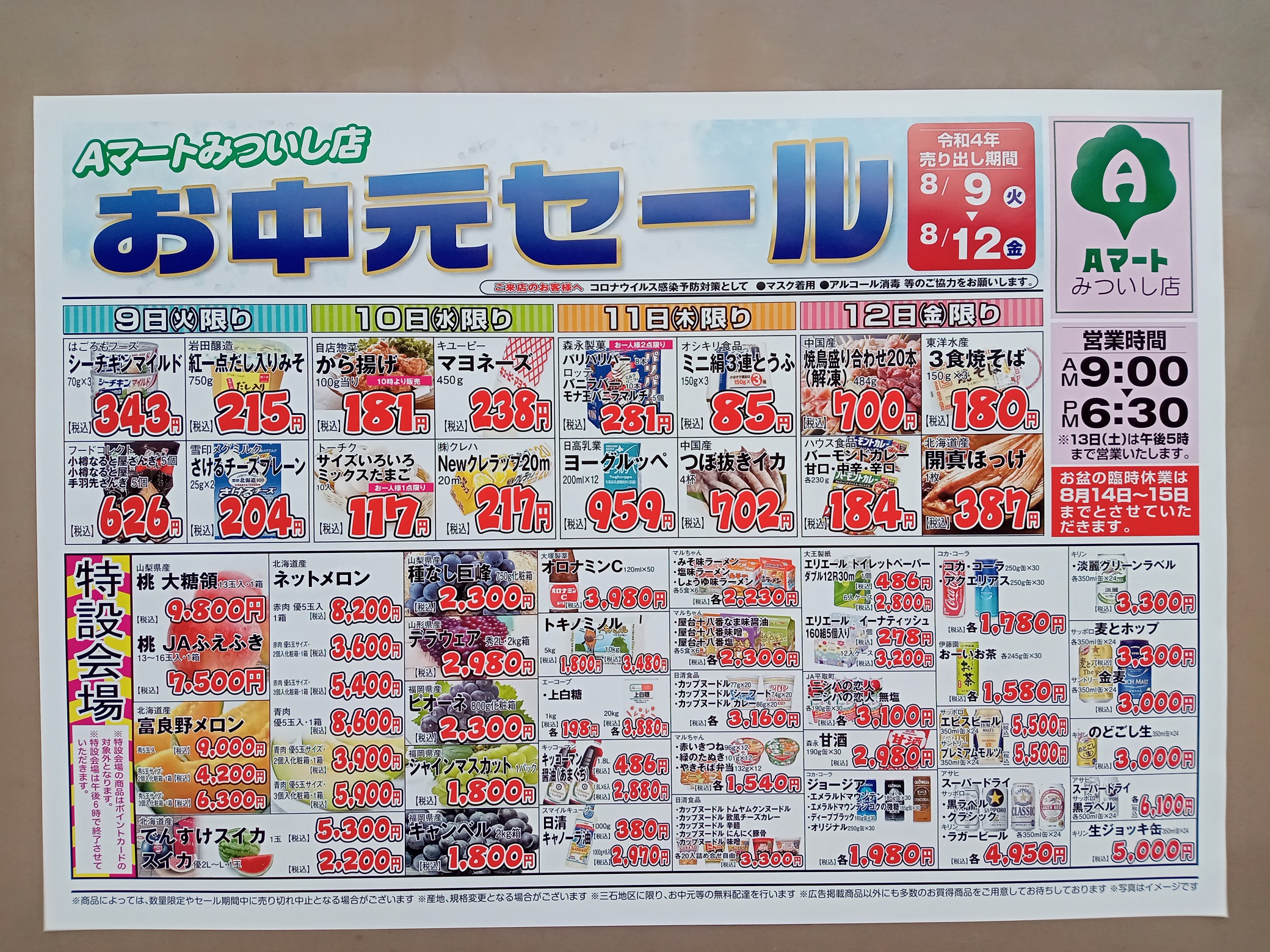 Aマート三石店にて、明日から