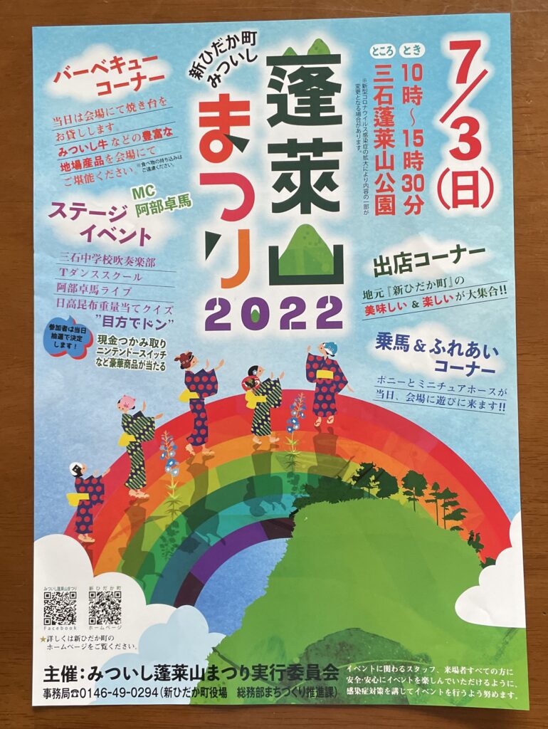 毎度どぉも。 【新鮮組 沖田】です。 今週末は三石産馬の 重賞競走出走はありません。 ・・・・・ 先日、新聞折り込みで届きましたが 7/3(日)は3年ぶりの 「蓬莱山まつり」です。 地元食材を堪能出来る 【バーベキューコ […]